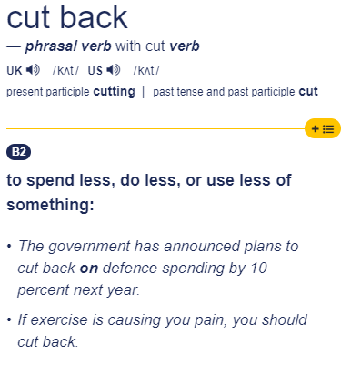 4. Cut back (on) – 줄이다